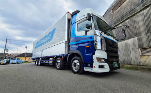 観光バスと同じくらいの大きさのトラックです。一般貨物はもちろん、精密機器やカゴ台車、イベント部材キャスター付きの荷物の輸送も得意としています。また、床面や壁面にエアラインラッシングレールを装備しているので、精密機器の輸送時の固縛も安心確実です。