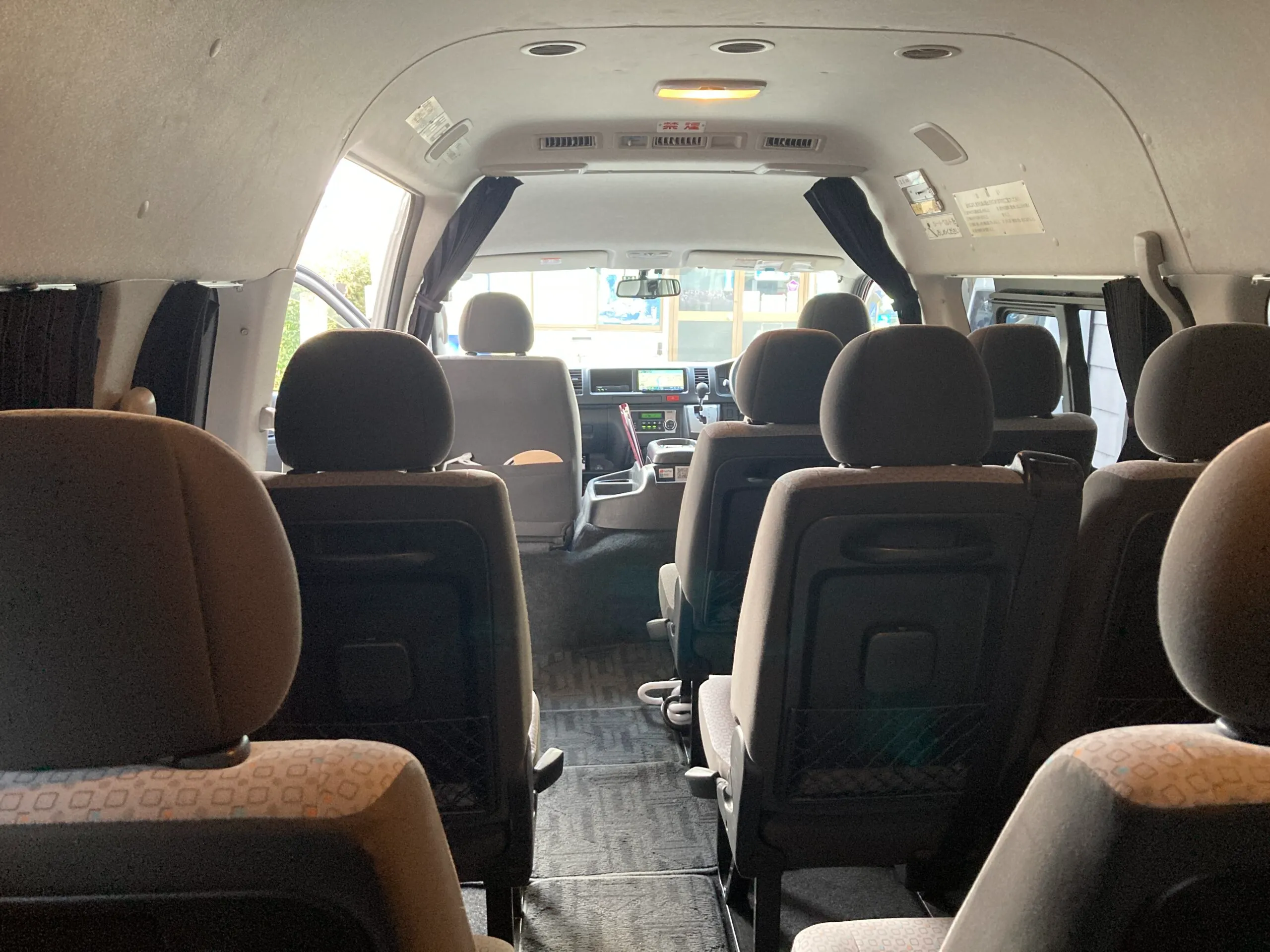 窓カーテン・スモークフィルム・ハンガーパイプ・折畳シート(最後部一列)・着替え用カーテン |