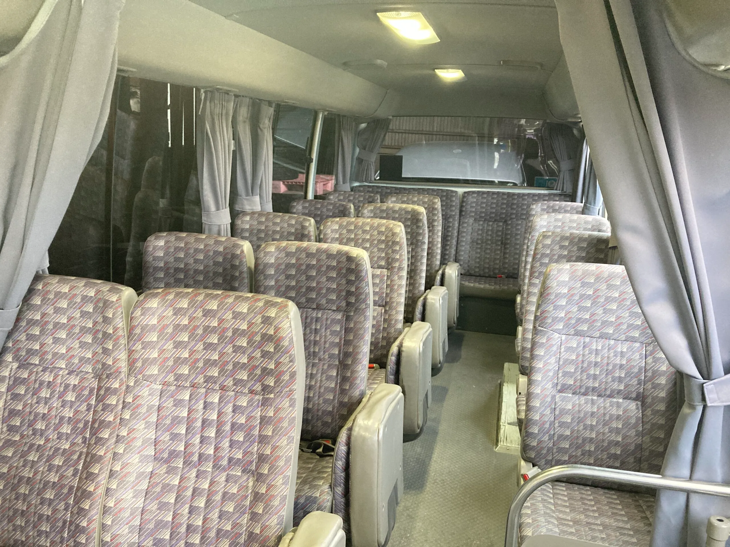 ただマイクロバスは大人数移動をメインにしているためトランクルームがありません。手荷物レベルは足元に置けるので問題ないですが、